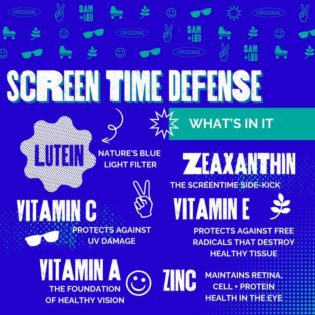 Support your child’s nutritional needs with SAM+LEO EYES+ Gummies. Specially designed for kids and teens, these gummies contain a blend of essential nutrients like lutein, zeaxanthin, vitamin A, zinc, vitamin C, and vitamin E. They’re crafted to complement a balanced diet and active lifestyle.