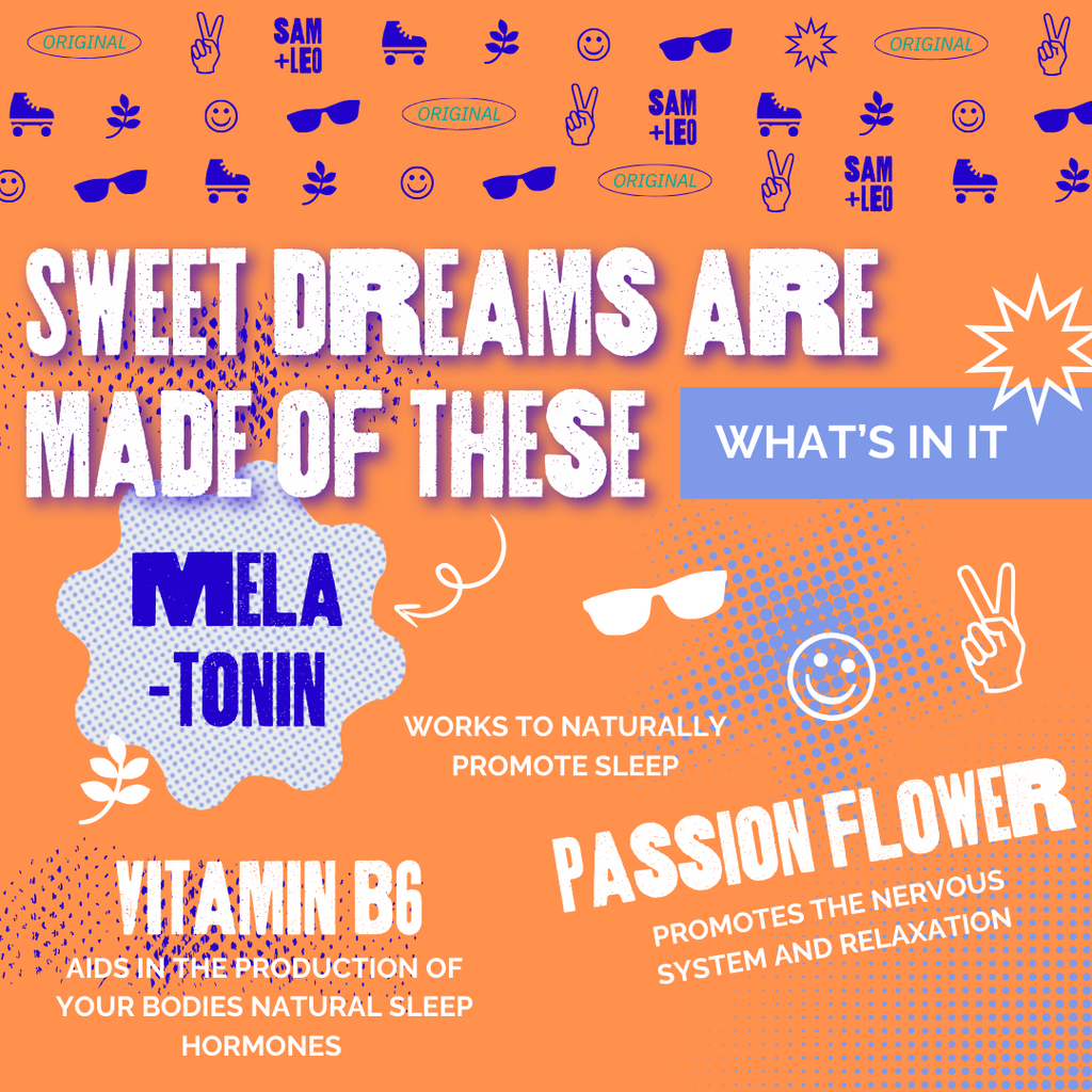 SAM+LEO SLEEP Gummies are a delicious and convenient way to complement your child’s bedtime routine. Formulated with melatonin, passion flower extract, and vitamin B6, these gummies provide key nutrients and botanicals to support a balanced lifestyle.